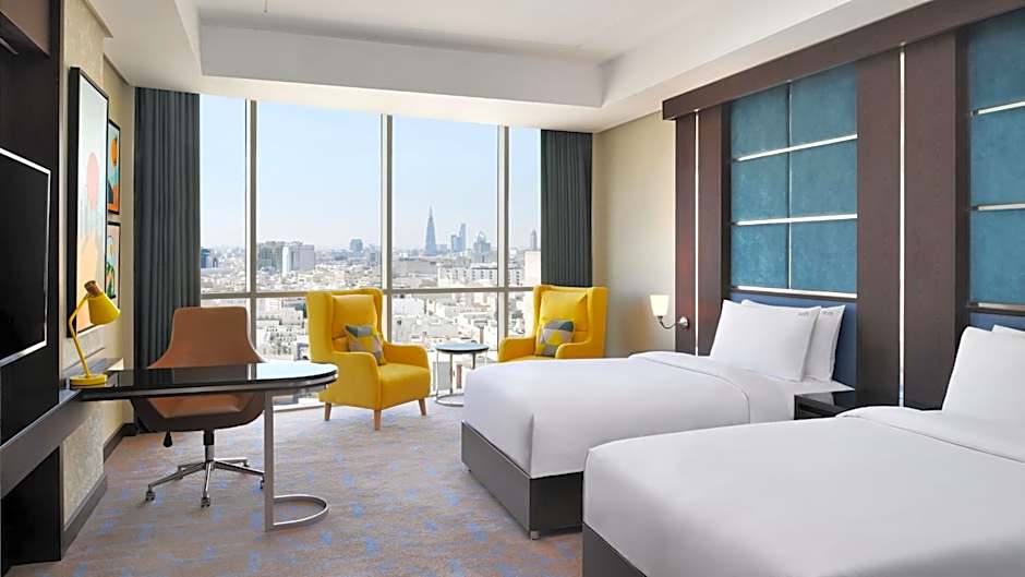 مع مركز مدينة الرياض على بُعد مسافة قصيرة، من السهل الوصول إلى معالم وسط المدينة، وتضيف الإطلالة على معلم بارز إلى التجربة. تشمل خيارات العافية حوض سبا وساونا (مجانًا) وحوض استحمام ساخن، بينما تسهم الموسيقى الحية في خلق أجواء محلية حيوية.