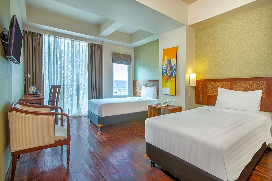 مع مجموعة متنوعة من أنواع الغرف المتاحة، بما في ذلك الأجنحة ديلوكس والتنفيذية، هناك شيءٌ يناسب الجميع في [اسم الفندق]! سواء كنت تسافر بمفردك، مع شريك، أو بصحبة العائلة بأكملها، ستجد مساحات مجهزة جيدًا تناسب احتياجاتك. الجناح العائلي الفسيح مثالي للمجموعات الأكبر، ويضمن أن يكون لدى الجميع مساحة للاسترخاء واستعادة النشاط. ما أفضل طريقة لتجربة نبض هذه المدينة الحيوية من أن تستريح في ملاذك الأنيق في نهاية كل يوم مفعم بالإثارة؟ احتضن روح جاكرتا واحجز إقامتك اليوم!