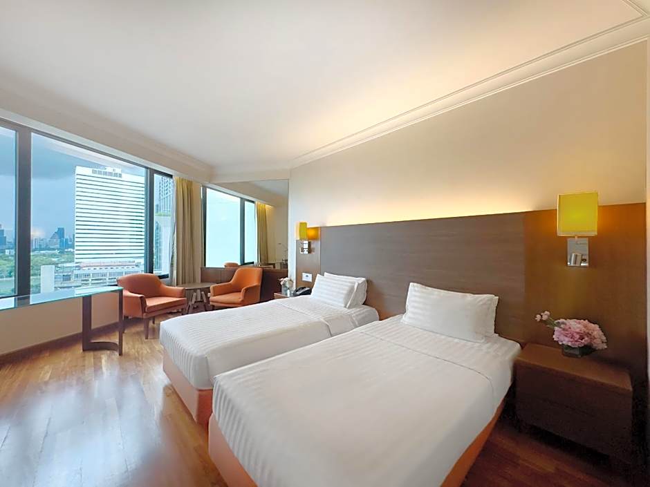 هل أنت مستعد للارتقاء بمستوى الاسترخاء؟ استرخِ بجانب المسبح الخارجي المتلألئ المطل على مناظر خلابة، ودع شمس بانكوك الدافئة تحتضنك أثناء ارتشافك للمشروبات المنعشة. سواء كنت تسترخِ مع العائلة أو تغوص في المياه المنعشة، فمن المؤكد أن يصبح مكان المسبح ملاذك المفضل الجديد. وإذا كنت ممن يسهرون لوقت متأخر، فتُحوّل عروض الموسيقى الحية في الفندق أمسياتك إلى مهرجان ساحر من الأصوات، فاتحةً نافذة مثالية للاسترخاء والتواصل مع المسافرين الآخرين.