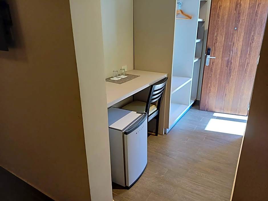 STUDIO CAPACITY 3 is 377 square feet and includes either a king-size bed 150-183 width or a single bed 80-130 width plus cable tv.