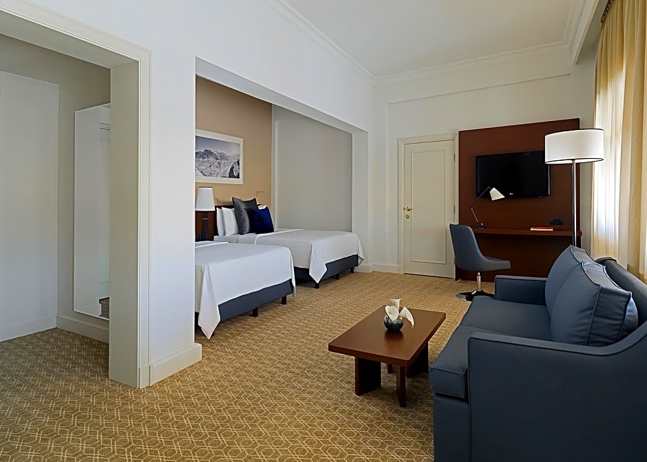 The air-conditioned suite features 1 bedroom and 1 bathroom with a hairdryer and slippers. The suite provides soundproof walls, a mini-bar, a tea and coffee maker, a flat-screen TV with cable channels, as well as city views. The unit offers 2 beds.