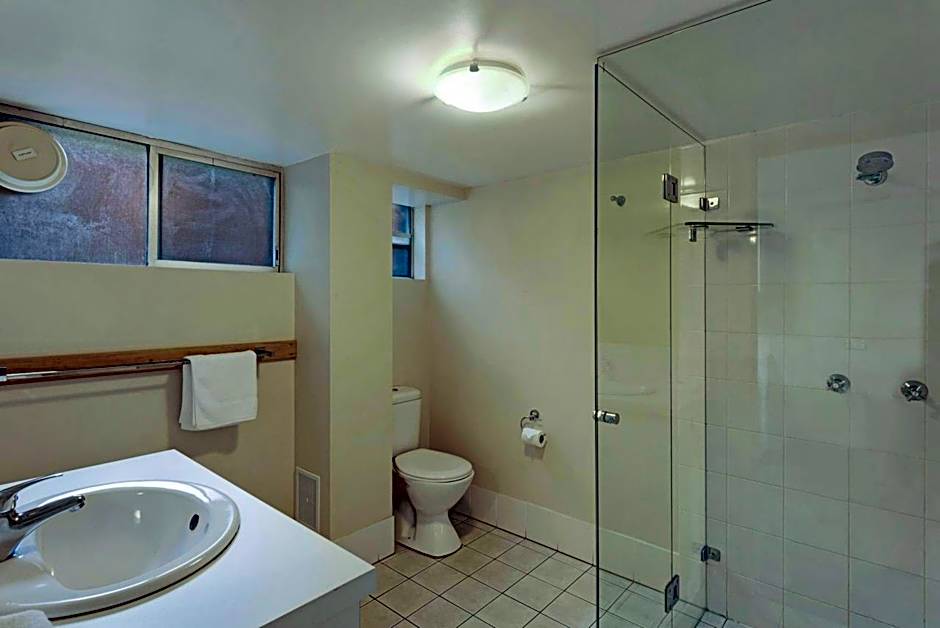 Open-plan motel-style accommodations with private bathroom, kettle, toaster, microwave and mini refrigerator with freezer.