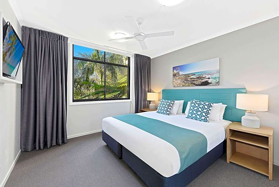 Club Wyndham Flynns Beach, Trademark Collection by Wyndham is a 4-star apart hotel in Port Macquarie, New South Wales, Australia. Located at 14-20 Flynn Street, it sits about 1,3 миль from the city center. A broad slate of amenities welcomes travelers: Restaurant, outdoor swimming pool (free), Kids' pool (free), free Wifi, room service, a fitness center (free), Spa (free), Steam room, Sauna (free), Air conditioning, Bar, Sun deck, Tour desk, 24-hour front desk, Kitchen, Beach umbrellas, Beach chairs/Loungers, Non-smoking rooms, Kitchenware, Kids' meals (extra charges), Picnic area, Garden, Elevator, Bathtub, Free toiletries, and Balcony.