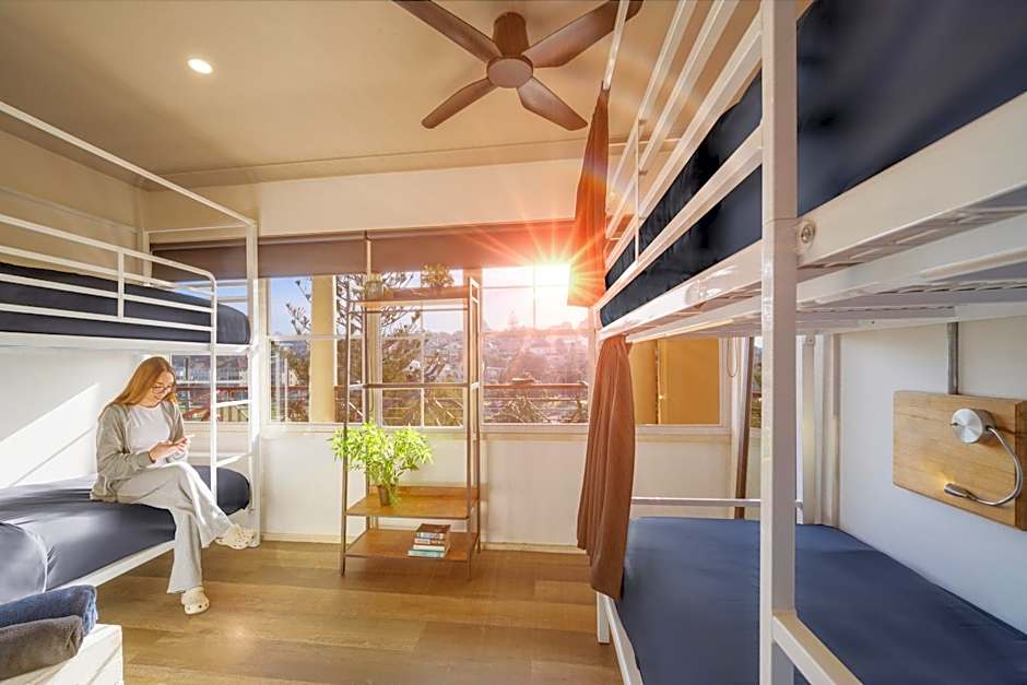 This renovated dormitory is located on the second floor with views over Coogee Beach. It features secure key access, included bed linen and a comfortable pillow. It offers access to shared bathroom facilities. Each bunk features a personal reading light and power point for charging.