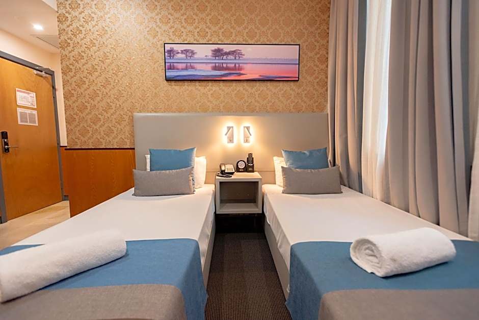 Providing free toiletries, this twin room includes a private bathroom with a walk-in shower, a hairdryer and slippers. The air-conditioned twin room provides a flat-screen TV, a mini-bar, a tea and coffee maker, a wardrobe as well as city views. The unit offers 2 beds.