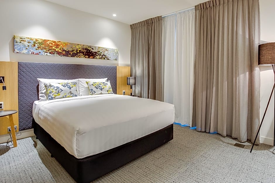 The hotel offers a Queen and Single Studio room that accommodates up to 3 adults and 1 child, with a twin bed and a queen-size bed. Smoking is not allowed in this room type. There is also an Accessible King Room and a King Room - Non-Smoking, both accommodating 2 adults and 1 child, with a king-size bed. Lastly, there is a Twin Room with 2 twin beds, suitable for 2 adults and 1 child. All of these rooms have a room size of 323 sqft or 344 sqft.