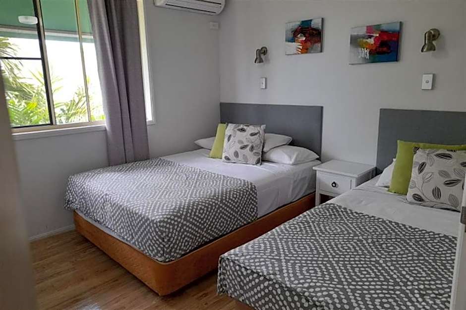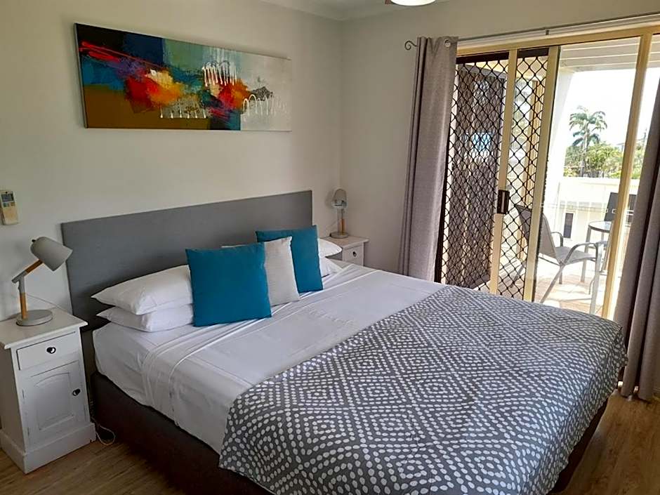 This apartment is a 2 bedroom poolside apartment on the ground floor, access via low rise stairs. Queen bed and 2 x single beds, 1 bathroom, air conditioned, fans, kitchen, dishwasher, open windows. Views to the Coral Sea Marina from the patio. Free Wi Fi, onsite car parking (one vehicle per booking under 2mtrs).