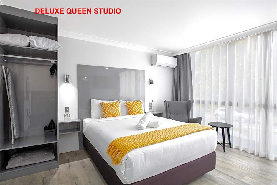 This newly refurbished modern Self-Contained room is equipped with a kitchenette and includes a sink, convection microwave, kettle, toaster, coffee maker, 2-door fridge/freezer, cutlery, crockery & utensils. A large 50 in smart TV, USB points, desk & chairs, a lounge chair, private bathroom and a deluxe pillow top queen bed.
