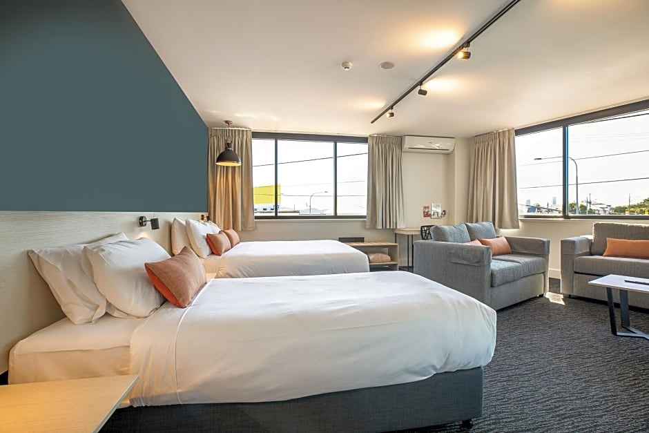 Nightcap at Chardons Corner Hotel offers a variety of studio rooms. The Queen Studio and Compact Queen Studio rooms both accommodate 2 adults and have a double bed, while the Studio Queen & Single room can accommodate 3 adults and has a twin bed and a double bed. All rooms are non-smoking and have different sizes ranging from 161 sqft to 269 sqft.