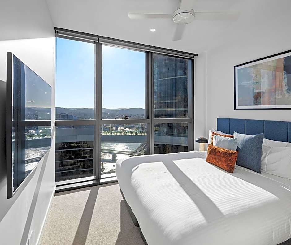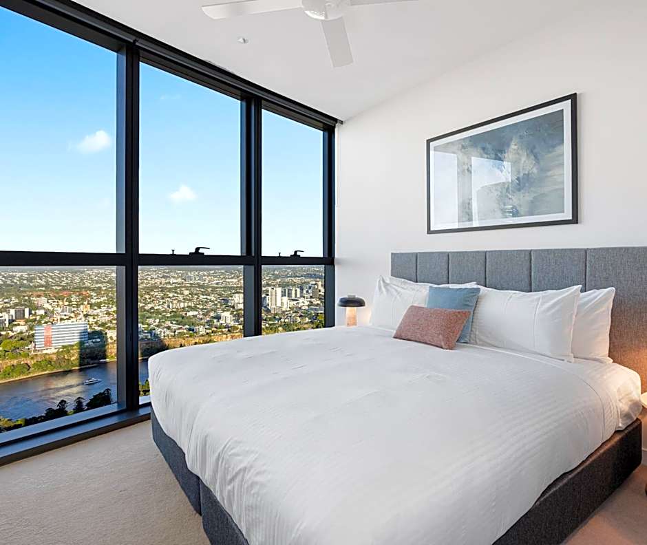 Addressing the river-adjacent vibe, the property sits at 8 Margaret Street in Brisbane, placing guests within easy reach of the city and its waterfront scenes.