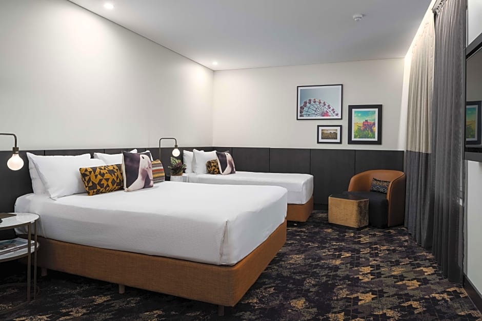 These well-appointed family rooms feature a King size Rydges Dream Bed, private bathroom with walk in shower, a work station for business travelers including, iron board, mini bar, hair dryer, safe deposit box, tea and coffee making facilities and air conditioning.