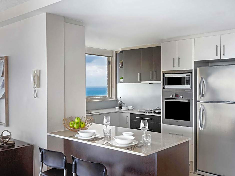 Apartments are located above the 30th floor and feature ocean views from you private balcony. It includes a kitchen, laundry and 2 private bathrooms, 1 with a bathtub.