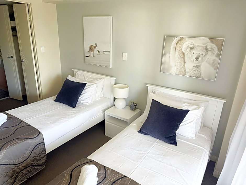 The luxury one bedroom air-conditioned apartments are self contained for all your holiday accommodations needs. A large balcony in every apartment gives spectacular views while adding real living and entertaining space to your apartment. Swimming Pool, Gym, B.B.Q's, Games Room. The bedding configuration is 1 x queen bed. Rates are for 2 people. The room caters for a maximum of 2 adults, and a maximum of 2 children but cannot exceed 3 guests in total.