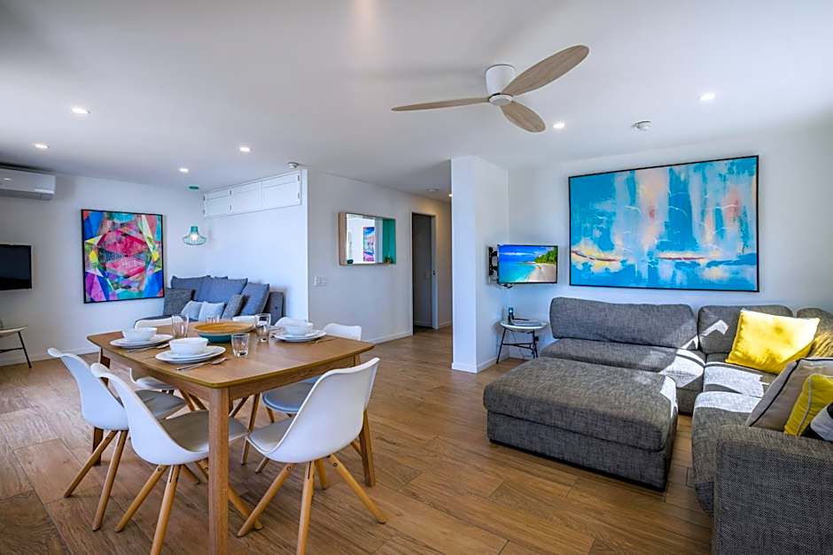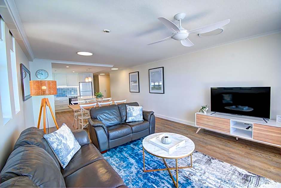 This adult only, luxury apartment offers direct ocean views. It also includes air-conditioning and a ocean facing master bedroom with an private bathroom that has a shower, spa bath, basins and mood lighting. A self-contained kitchen, laundry facilities, electric leather recliner and Bluetooth speakers are provided.