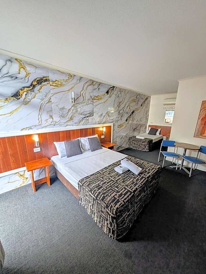 This spacious air conditioned fully renovated room features a flat screen TV. It also has a full size fridge, toaster, microwave and tea and coffee making facilities.