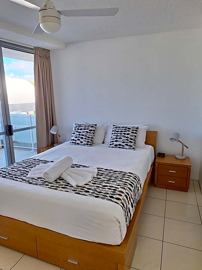 Located in the Tower I Building, level 2, this apartment features a private balcony with garden views. It also has a fully equipped kitchen, combined bathroom/laundry facilities and a separate living area with flat-screen satellite TV. Please note that this apartment is airconditioned in the living area. Please note that there is no capacity for additional guests.