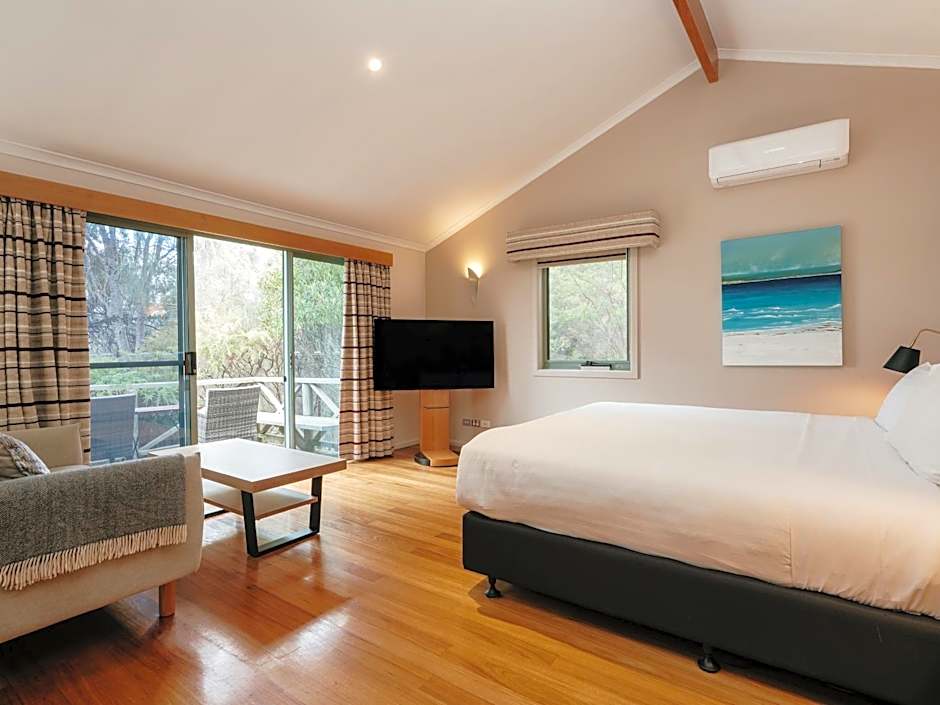 Ideal for a couple or a group of three, this room features a spacious living area with double sofa bed. Glass doors lead out to a private balcony with views of the park’s natural landscape.