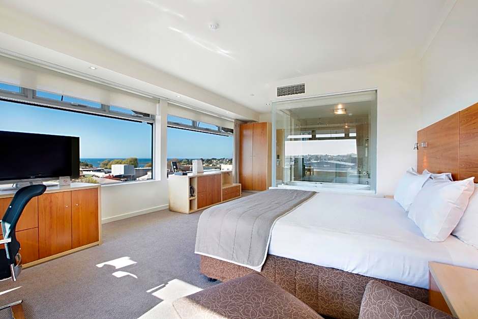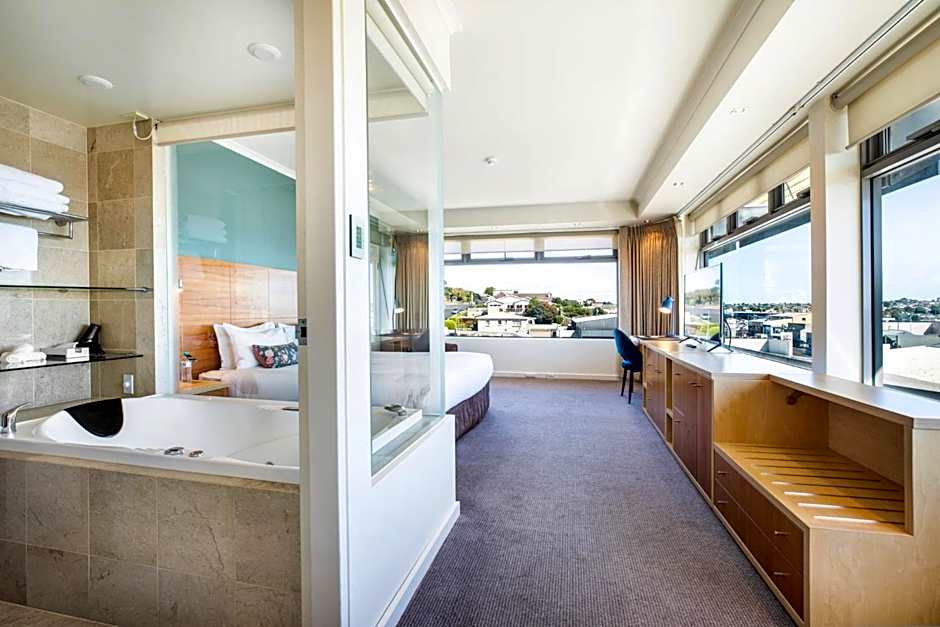 This room features a spa bath and city views.