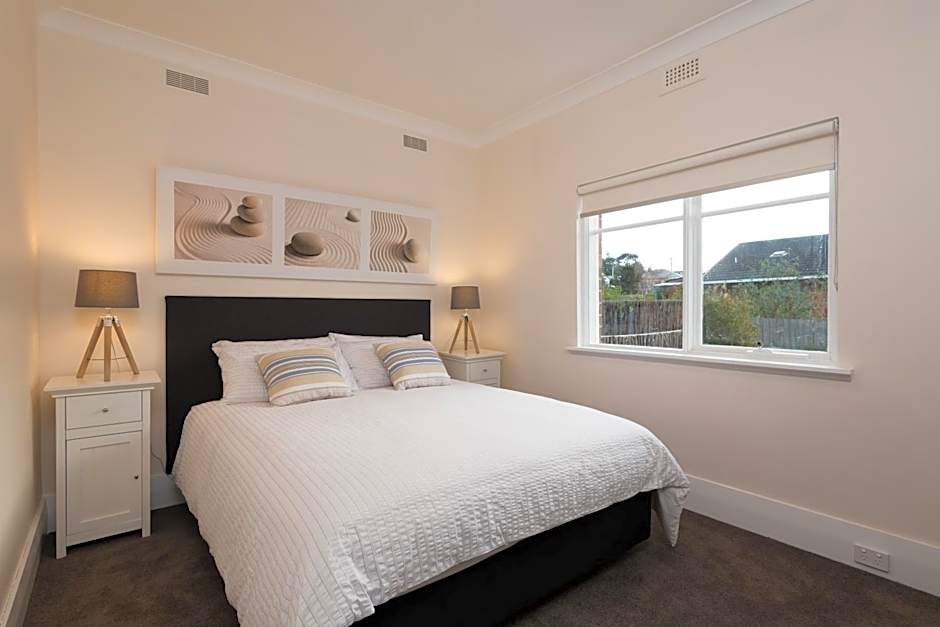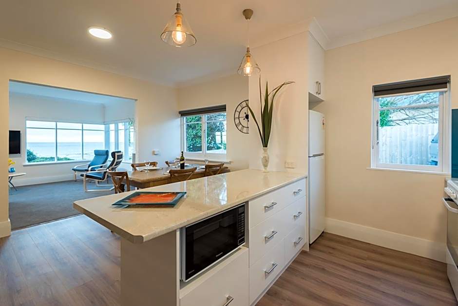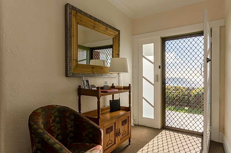 The property is a lovely old home that is directly across the road from the beach. It is very well presented and spotlessly clean, and the bed was very comfortable. A bowl of fresh fruit and a complimentary glass of port each was a very nice touch. We only met one of the hosts, Terry, he was very welcoming and gave us lots of information. We will define returning to this lovely home.