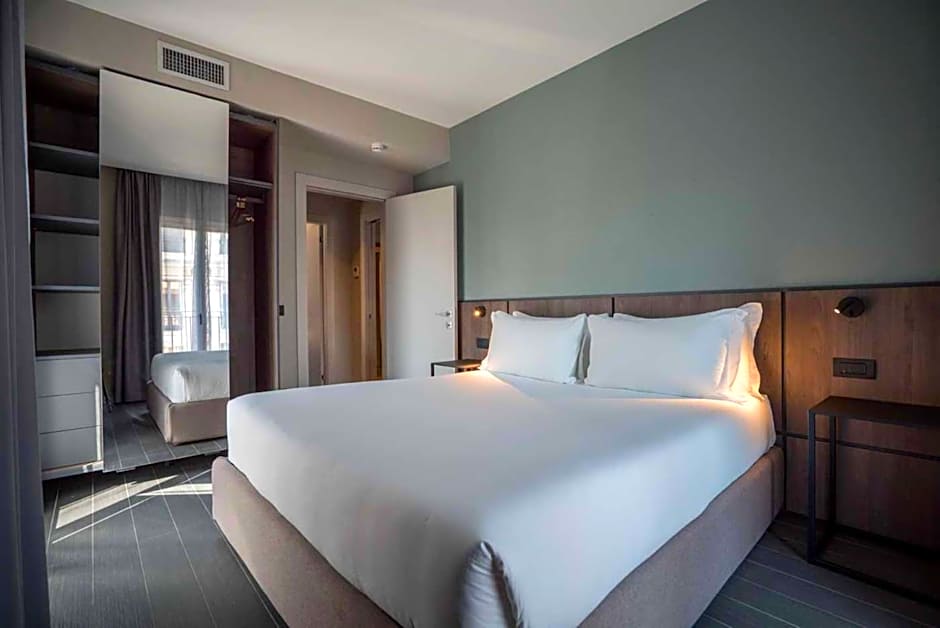 Guests can make meals in the kitchen that features a stovetop, a refrigerator, a dishwasher and kitchenware. The spacious double room features air conditioning, a washing machine, a balcony with city views as well as a private bathroom boasting a walk-in shower.