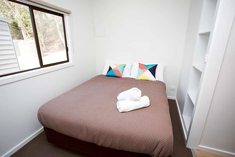 This budget cabin features a fully equipped kitchenette and an private bathroom.