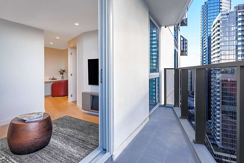 Inside, guest quarters offer soundproof rooms that open to private balconies with landmark views. In-room kitchens come stocked with kitchenware, making it easy to whip up a meal or reheated takeout. Non-smoking rooms keep the vibe fresh for a comfortable stay.