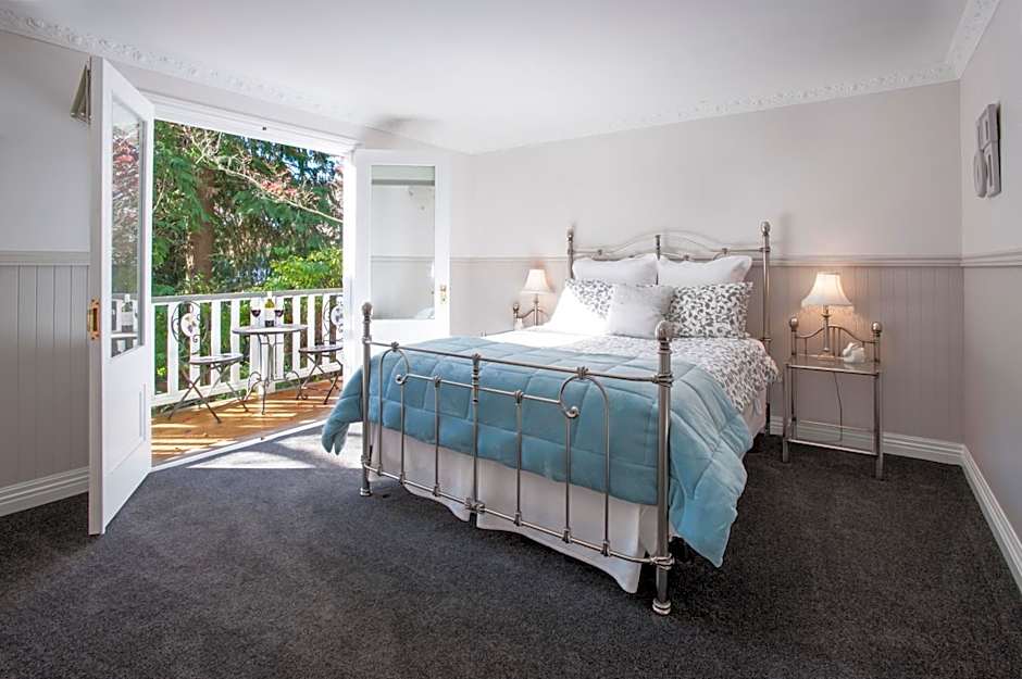 This suite is set over two floors. Upstairs, in this renovated petite suite, you will find a queen bed and a bathroom with a shower over a bath. Air-conditioning and electric heating are provided. A bar fridge with continental breakfast supplied, tea/coffee making facilities and a quaint sitting room with a picture window are all downstairs.