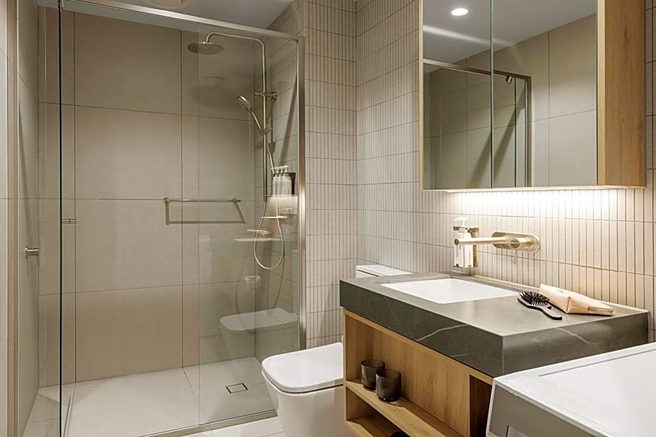 Shower leaking. 1 lift only caused unexpected and annoying delays. Why charge so high for car parking when there was always space? Saucepans and frypan packed in to a cupboard to a point where I broke a saucepan lid trying to get everything out. The induction stove was impossible to understand. The doors bang shut so loudly. My family is conscious of not disturbing neighbours, so we take care to shut the door carefully, but if you let the door shut by itself......BANG!!!! Many guests allowed that to happen (including the Fire Stairs doors which were often the most prompt way to get downstairs.) Some guests were very loud during normal sleeping hours....OK for me and my son, but surely not OK for light sleepers.