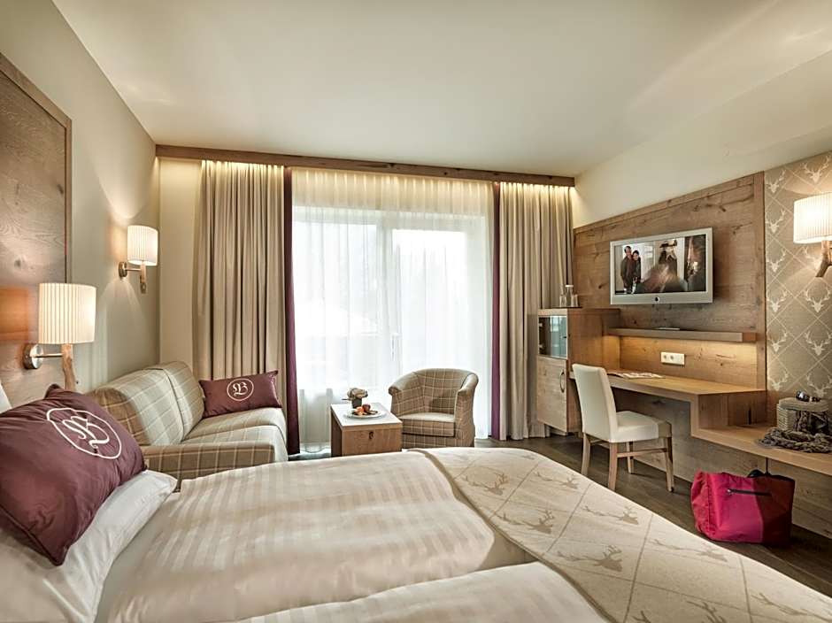 Room with south facing balcony offering panoramic view. Newly furnished characteristic austrian style with wooden floors, a bathroom with shower and separate toilet, bathrobe, desk, small lounge & table, mini-bar, roomsafe, flat-screen TV.