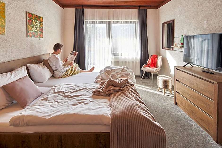 The twin room includes a private bathroom fitted with a shower, a hairdryer and slippers. The twin room features a wardrobe, a safe deposit box, heating, a flat-screen TV with cable channels, as well as mountain views. The unit has 2 beds.