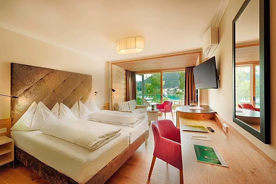 Wellness and recreation abound with a Turkish/steam bath, spa, sauna, fitness center, sun deck, and massage options. Water sports facilities on site invite lake adventures, while family and group guests can enjoy a playground, mini golf, tennis court, terrace, balcony, and garden. Babysitting/child services, tour desk, elevator, and other thoughtful touches round out a versatile offering for an Austria lake getaway.