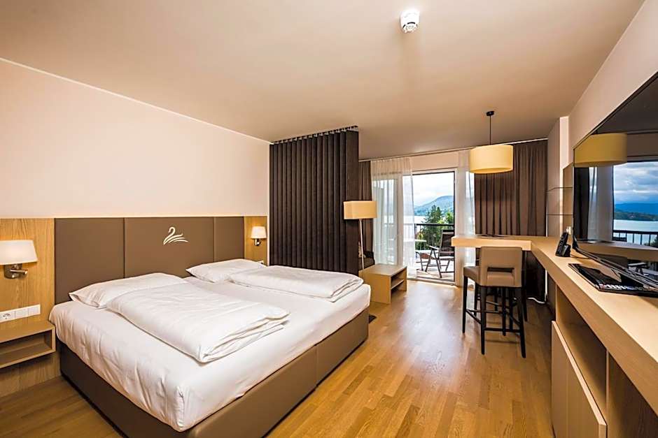 Pets are welcome with an extra charge. The hotel offers non-smoking rooms, wheelchair accessibility, and elevator access to upper floors, plus beach amenities such as free beach umbrellas and loungers, ensuring a relaxed and scenic stay near Krumpendorf.