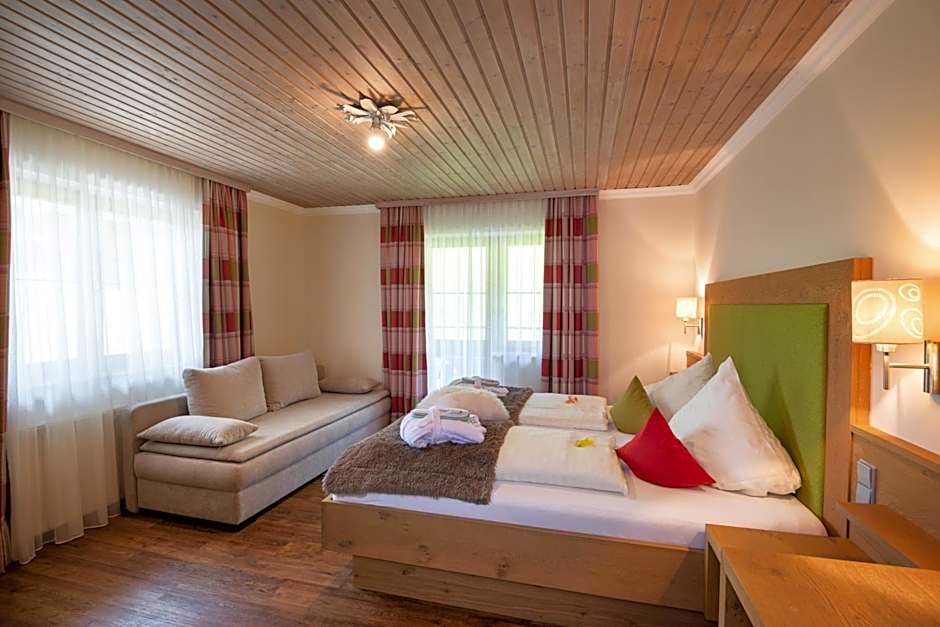The Natur & Familienhotel Der Stieglerhof offers Standard Double Rooms with Balcony, Family Rooms, and Double Rooms with Balcony. These rooms can accommodate 2 adults and 2 children and feature a queen-sized bed and a sofa bed. With a size of 269 sqft for the Standard Double Rooms and 506 sqft for the Family Rooms, guests can enjoy a comfortable and spacious stay. Smoking is not allowed in any of these rooms.