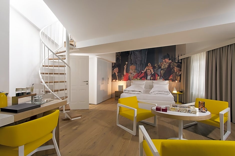 Choose from a variety of comfortable and stylish rooms at Small Luxury Hotel Goldgasse. The Suite with Roof Terrace offers a spacious 431 square feet of luxury, perfect for a romantic getaway. Relax and enjoy the stunning views from your private terrace. For a cozy and intimate stay, the Premium Double Room provides 215 square feet of elegantly designed space, complete with a comfortable queen-size bed. The Junior Suite offers 291 square feet of luxury, ideal for a small family with its double bed and accommodation for one child. And if you're looking for a comfortable stay without compromising on quality, the Standard Queen Room is the perfect choice with a double bed and space for one child. No matter which room you choose, you can expect a comfortable and memorable stay at Small Luxury Hotel Goldgasse.