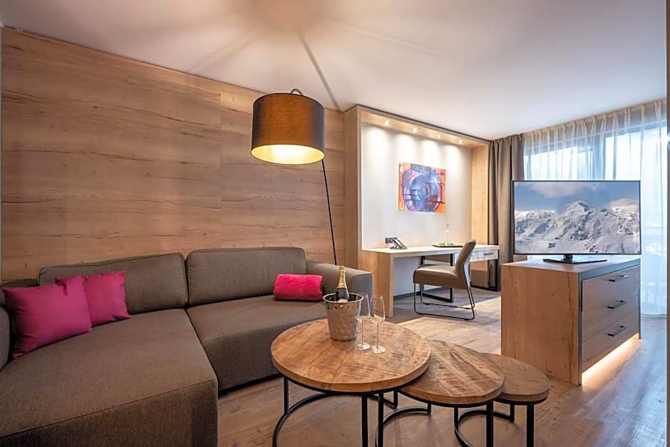 This spacious suite consists of 1 living room, 1 separate bedroom and 1 bathroom with a walk-in shower and free toiletries. The suite features parquet floors, a seating area with a flat-screen TV, soundproof walls, a tea and coffee maker as well as mountain views. The unit offers 2 beds.