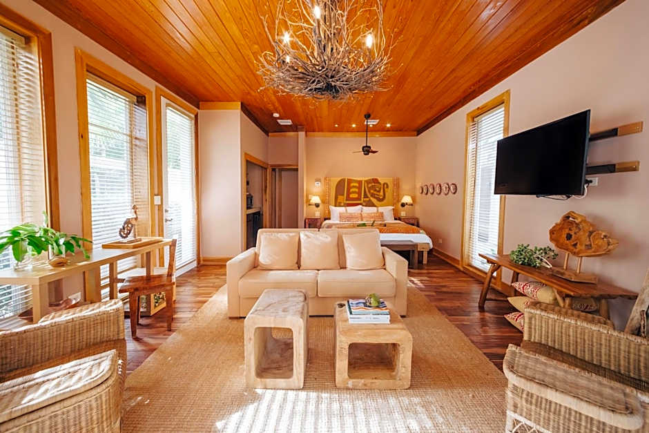 Set within tropical grounds, just off the main pathway to the beach, this 1-bedroom cottage offers views of the garden. It includes with 1 extra large double bed and 1 sofa bed.