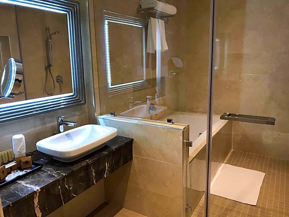 Guests will have a special experience as the suite offers a rooftop pool. Featuring a private entrance, this air-conditioned suite consists of 1 living room, 1 separate bedroom and 1 bathroom with a bath and a shower. The suite's kitchenette, which features a microwave, is available for cooking and storing food. The spacious suite provides a mini-bar, a tea and coffee maker, a seating area, a flat-screen TV with cable channels, as well as city views. The unit offers 1 bed.