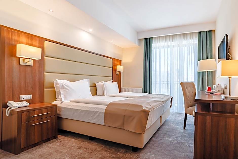 This spacious room has a TV, a mini-bar and a desk. The bathroom is fitted with a bath or a shower.