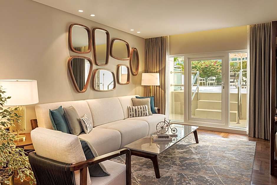 This spacious suite is consisted of of 1 living room, 2 separate bedrooms and 1 bathroom with a walk-in shower and free toiletries. The air-conditioned suite offers a flat-screen TV with streaming services, a mini-bar, a tea and coffee maker, a seating area as well as garden views. The unit offers 3 beds.