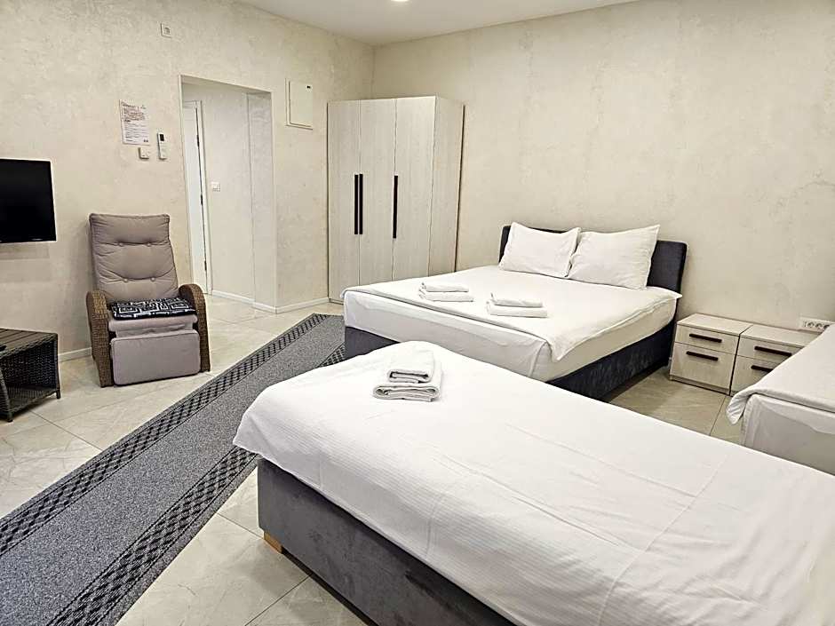 The studio's kitchen, which has a refrigerator and kitchenware, is available for cooking and storing food. The studio offers air conditioning and a mini-bar, as well as a private bathroom boasting a hairdryer. The unit has 3 beds.