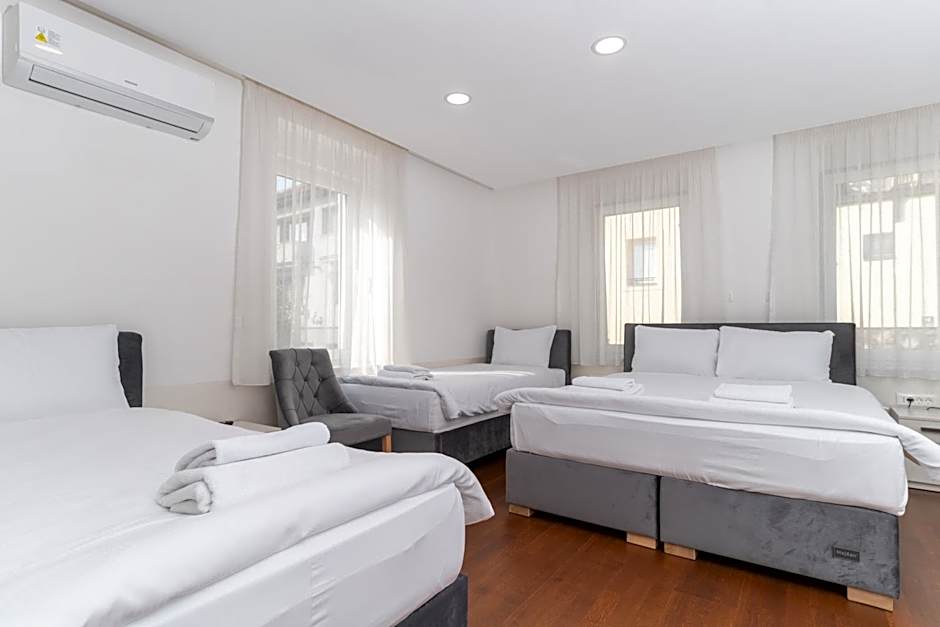 The Ornament Hotel and Apartments offers a variety of room options including the Deluxe Queen Room with a Queen size bed for 2 adults, the Basic Triple Room with 2 Twin beds and a Queen size bed for 4 adults, and the Deluxe Studio with a Queen size bed and 2 Twin beds for 4 adults. There is also the Studio with Balcony that accommodates 5 adults with a Queen size bed, 2 Twin beds, and a Sofa Bed. The Presidential Suite accommodates 6 adults with a Sofa Bed, 2 Twin beds, and a Queen size bed. Finally, the Family Studio accommodates 5 adults with a Queen size bed and 3 Twin beds. Smoking is not allowed in any of the rooms.