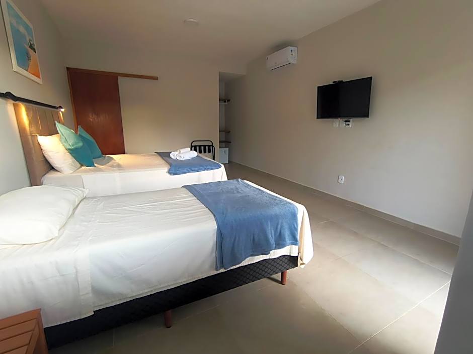 The Pousada New Paradise offers a variety of rooms, including Double Rooms, Standard Quadruple Rooms, and Standard Triple Rooms. Smoking is not allowed in any of the rooms. The Double Room accommodates 2 adults and 1 child, while the Standard Quadruple Room and the Standard Triple Room can accommodate 4 adults and 1 child and 3 adults and 1 child respectively. The bed sizes vary, with options including Double beds, Twin beds, or a combination of both.