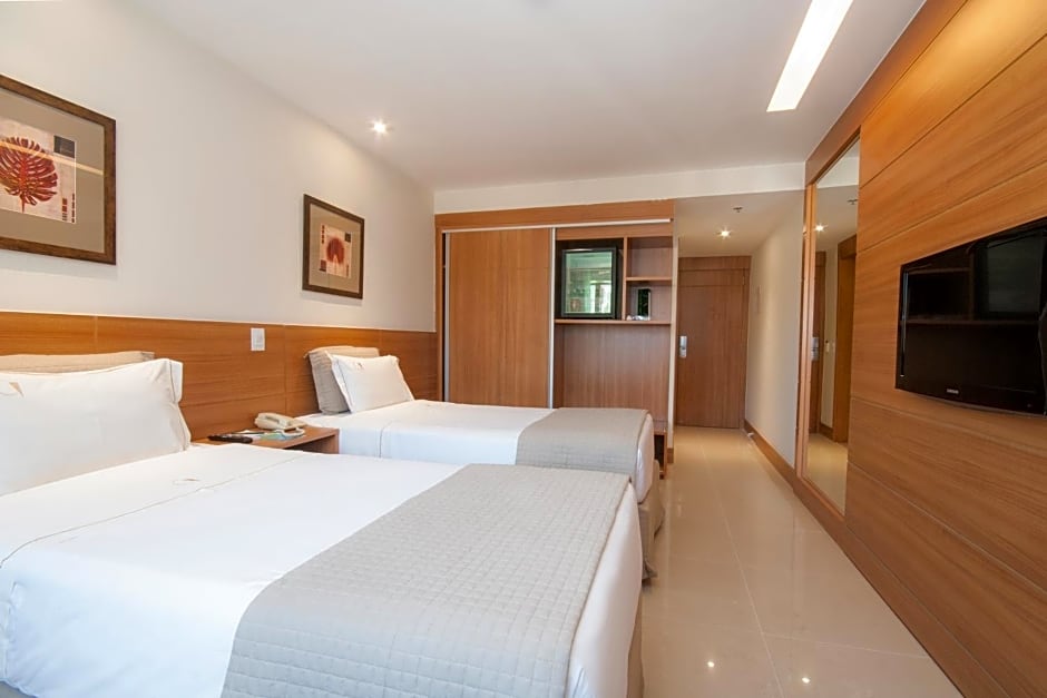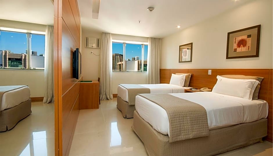 As you settle into your chic room at Américas Granada Hotel, you'll find a delightful array of options to suit your style. Choose from a spacious Deluxe Double or Twin Room or indulge your senses with a luxurious Executive Suite, featuring a cozy Queen bed and ample space to stretch out after a day filled with Rio’s excitement. Families and friends traveling together will appreciate the generous Family Room, providing plenty of room for everyone to relax and recharge. With each accommodation designed with comfort in mind, your restful retreat in the heart of Rio de Janeiro is just a cozy moment away!