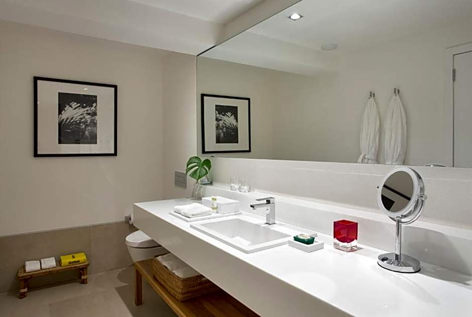 Os hóspedes podem saborear refeições no Cedilha, o restaurante no local, e relaxar no bar após um dia na areia. O cenário à beira-mar é complementado por uma refrescante piscina ao ar livre, acesso direto à praia e comodidades práticas como Wi-Fi gratuito e refeições 24 horas com recepção 24 horas e serviço de quarto. Para as noites dentro do hotel, serviços de streaming como Netflix adicionam um toque acolhedor, enquanto um terraço e deck solar oferecem um local perfeito para o pôr do sol sobre o mar.