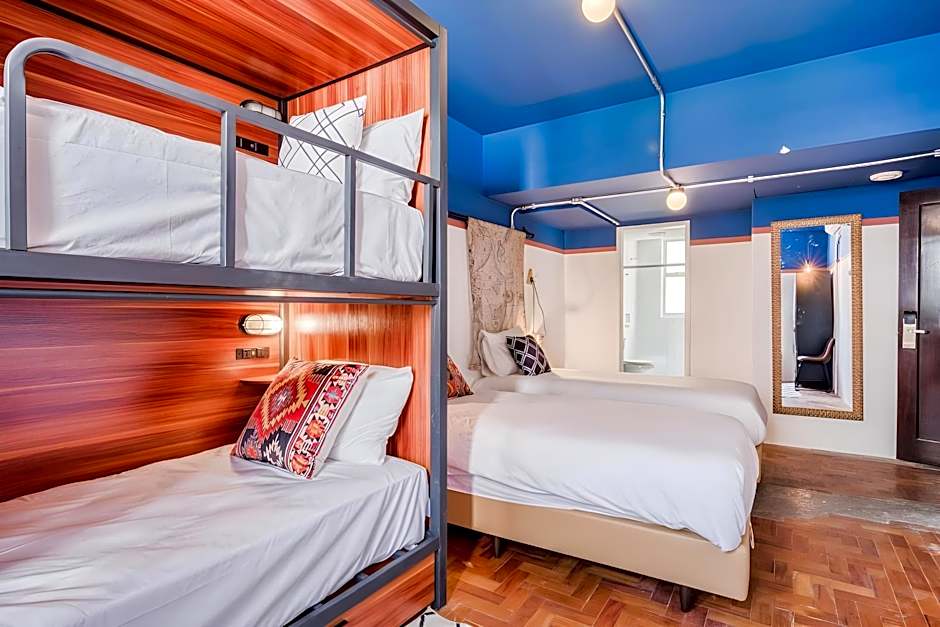 The hotel offers a variety of rooms including Standard Twin Rooms with two twin beds, Bed in Large Dorm with a bunk bed, Family Rooms with two twin beds and a bunk bed, Bed in Small Dorm with a bunk bed, Deluxe Rooms with a queen size bed, Standard Rooms with a double bed, and Studio Apartments with a king size bed. All rooms are non-smoking and can accommodate either 2 adults and 1 child or 4 adults and 1 child.
