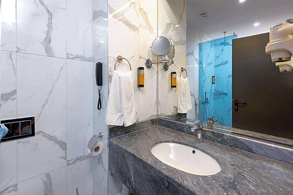 This King Room is 89 ft² and offers king size bed, fully equipped mini-bar, toiletries by Geneva Guild, rain shower, LED TV with more than 50 international channels, high speed WiFi, free safety deposit box, central air conditioning, an electrical kettle set and a balcony.