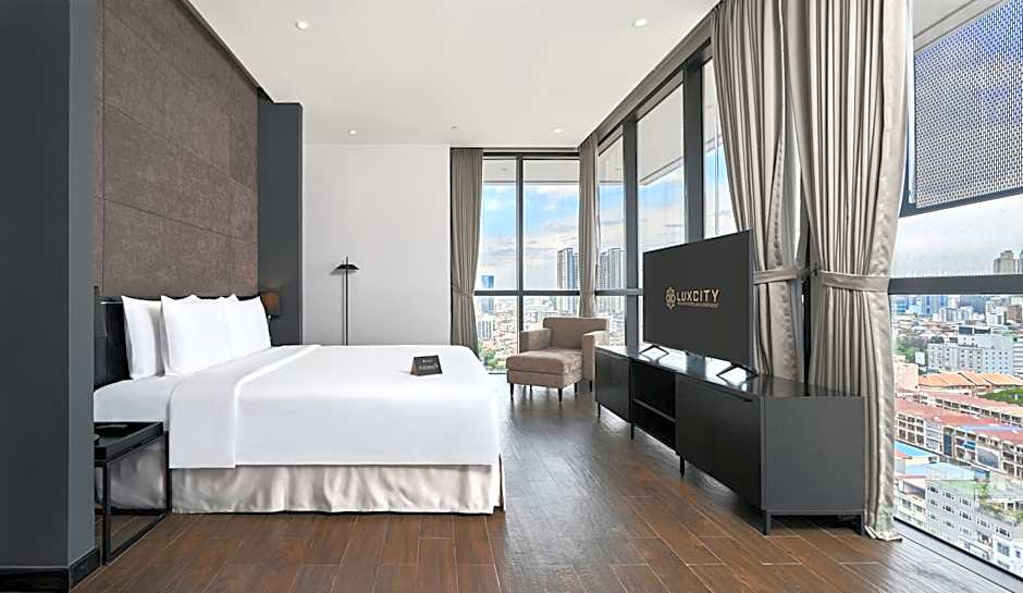 The Luxcity Hotel & Apartment offers a variety of room types including Studio Twin, Deluxe Classic, Deluxe Premium, Executive Residence, Duplex Suite, and Studio Queen. These rooms can accommodate between 2 and 6 adults, with some also allowing for 1 child. All rooms are non-smoking and the bed sizes range from twin beds to king size beds, with some rooms also including sofa beds.