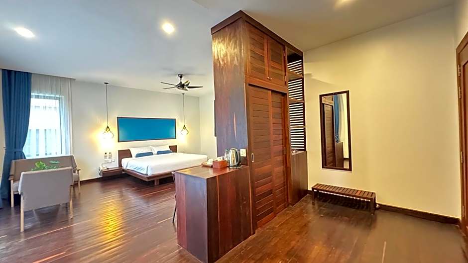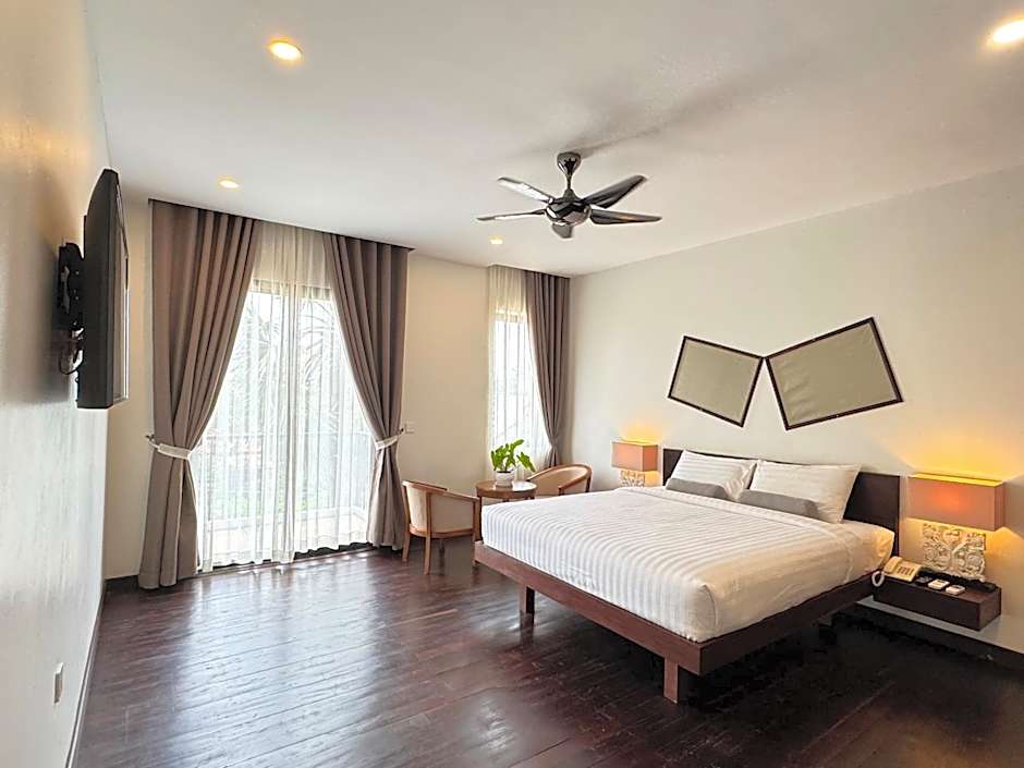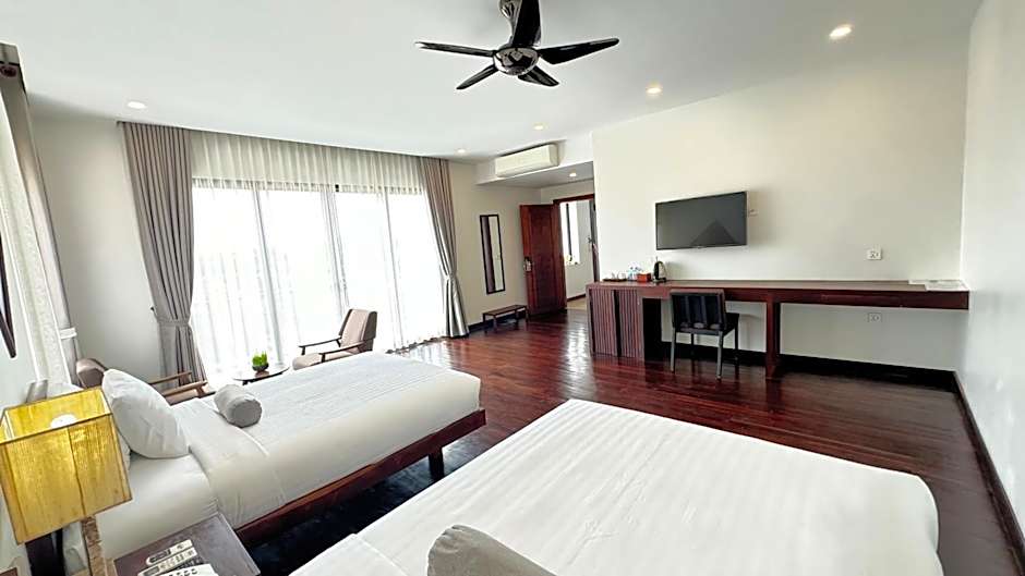 Mealy Villa paints a breezy Siem Reap getaway with an outdoor pool that comes with a view and is open year-round. The pool is adults-only, offering a quiet spot to unwind, while garden greenery and a balcony-friendly terrace frame relaxing moments as the day slips by.