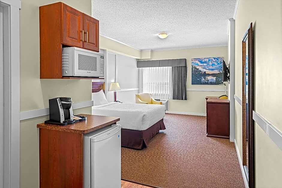 Room options include Queen Room, King Room, Deluxe Room, Studio with 2 Queen Beds, Junior Suite with 2 Queen Beds, and Suite configurations. Only cash is accepted. Pets are allowed, charges may apply.