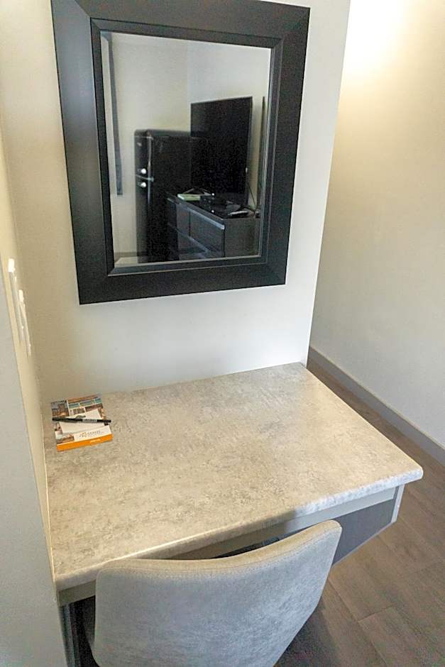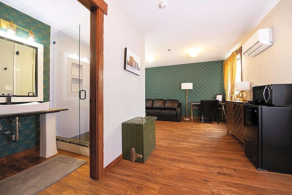 Great location, well situated with access to the highway easily enough. Quiet for the most part... neighborhood was nice - east to navigate, lots of shops, restaurants and local attractions within walking distance. We loved the history about the Baker Hotel. Very nicely renovated property with friendly, knowledgeable staff. Excellent bathroom facilities, kitchen had a large fridge so overall the room was very good.
